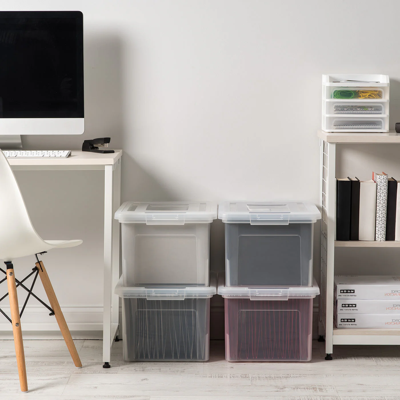 - Plastic File Storage Container Bin Tote has grooves on the lid and body to create a secure stacking experience. IRIS USA lid-body construction ensures stability to stack securely for easy moving, and save space in your house, apartment, and condo.