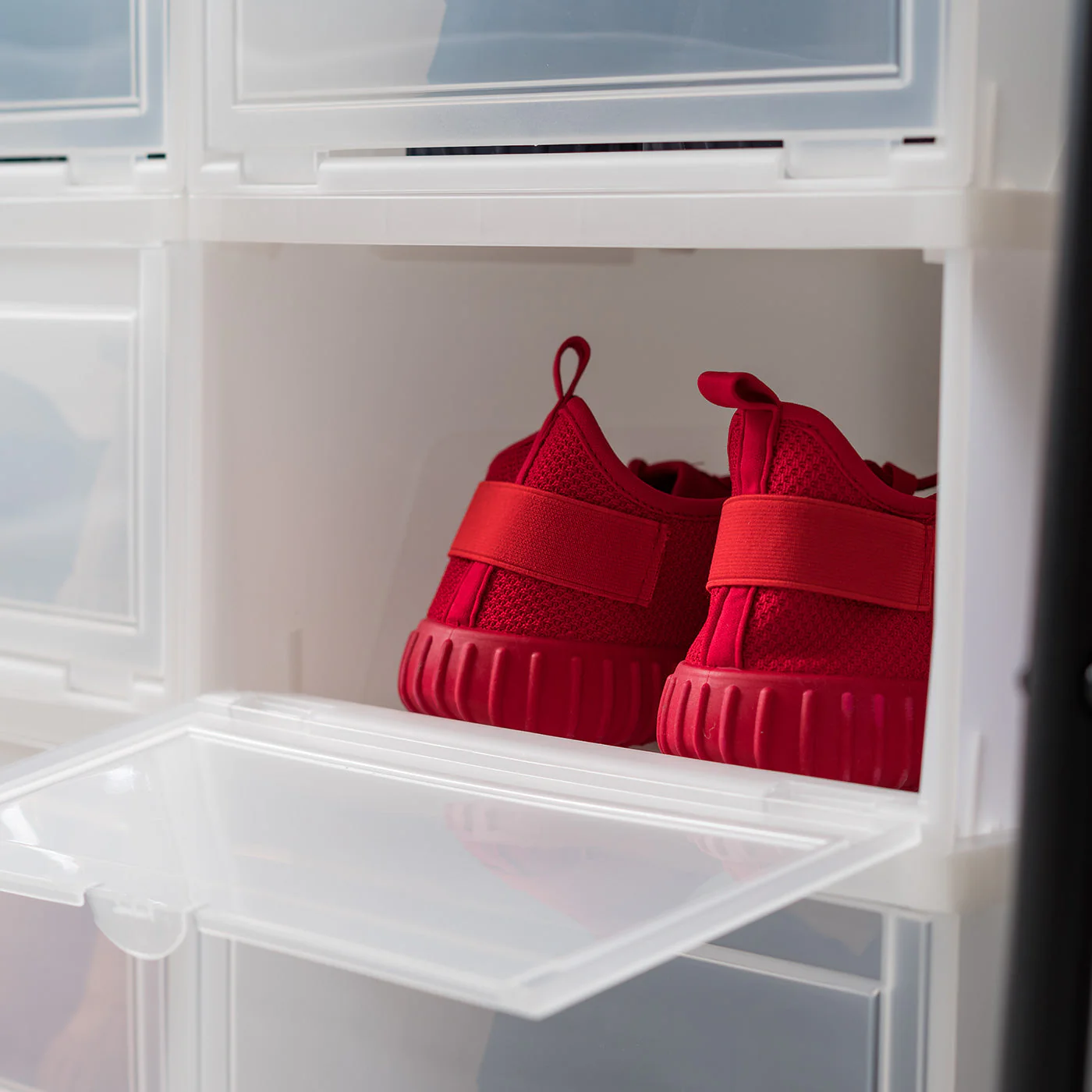 - Stacking shoe boxes let you personalize your shoe organization and maximize space